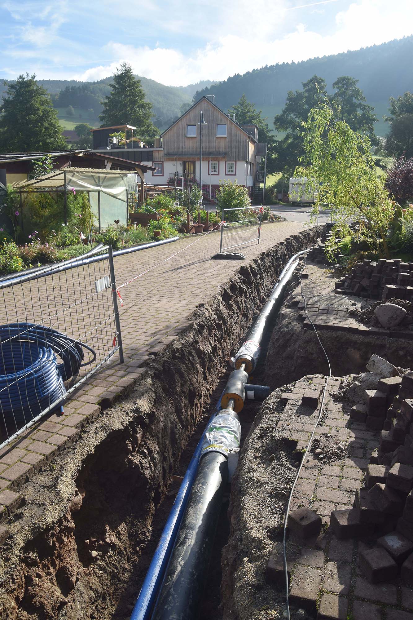 Im Neubaugebiet Grafenberg werden mit 140 Meter Hauptleitung und 60 Meter Nebenleitungen am Wilhelm-Oberle-Weg elf Bauplätze mit Wärme versorgt. Hier ist erstmalig der Nahwärmeanschluss mit Wärmetauscher obligatorisch.