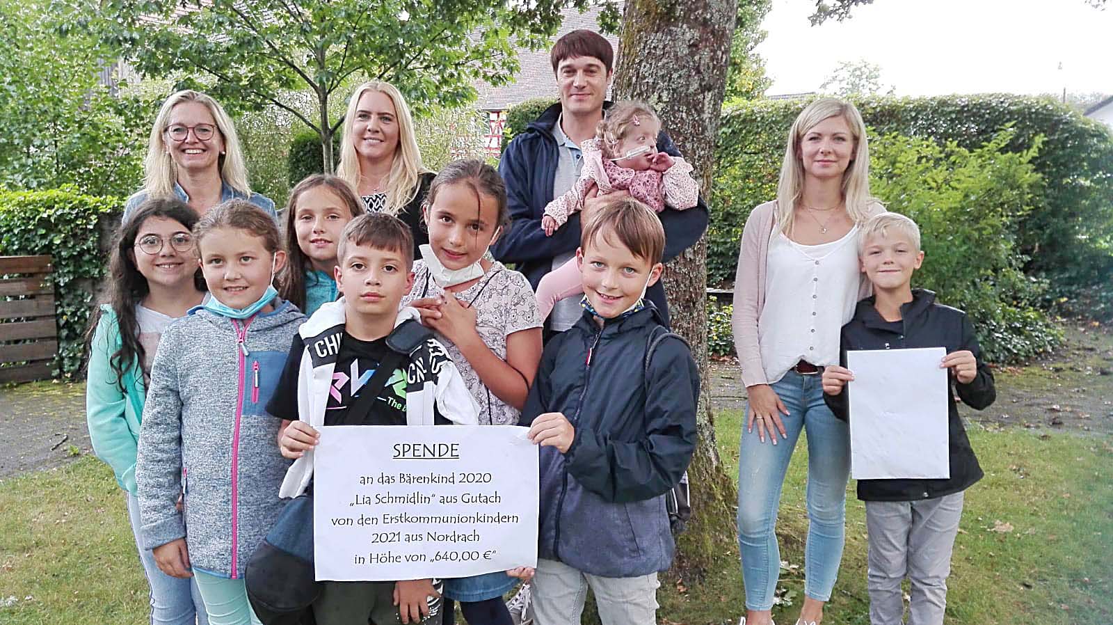 Letzte Woche haben die sechs Kommunionkinder aus Nordrach mit ihren beiden Gruppenleiterinnen Bianca Repple und Natalie Tuncay eine Spende in Höhe von 640 Euro an das »Bärenkind« Lia Schmidlin in Gutach übergeben.