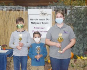 Sonja Welle wurde Vereins meisterin mit ihren »Farbenzwerge schwarz«, die insgesamt 385,5 Punkte erhielten. Nur knapp geschlagen folgte auf dem zweiten Platz Martha Bohnert mit »Englischen Schecken schwarz« (385 Punkte). Über den dritten Platz konnte sich Rafael Welle mit »Hermelin« freuen, die ebenfalls mit 385 Punkten bewertet wurden.