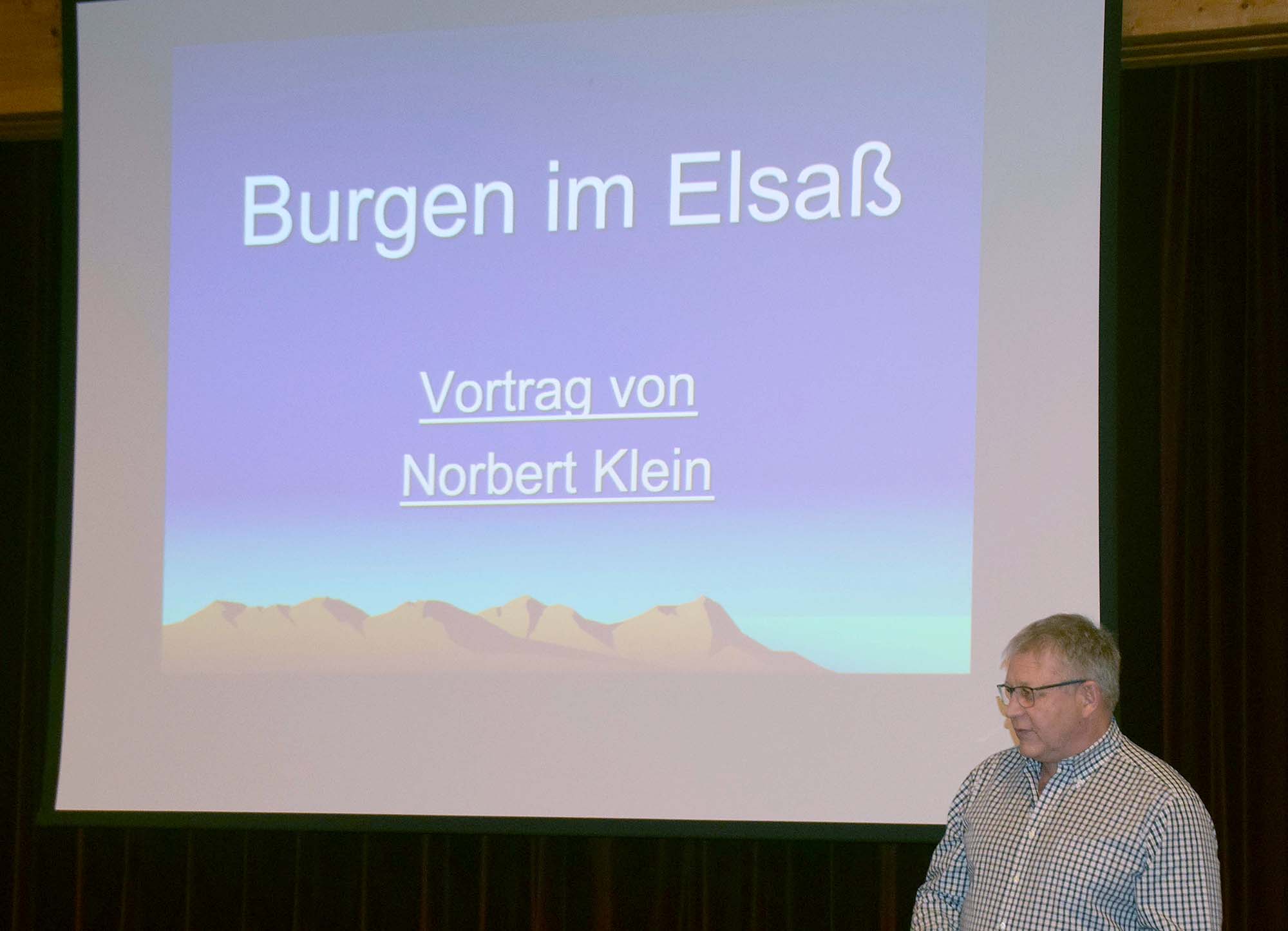 Am vergangenen Montag fand die erste und zugleich letzte Veranstaltung des Bildungswerks Nordrach im Coronajahr 2021 statt. Der Burgenkenner Norbert Klein aus Lahr hielt im Pfarrheim vor rund zwanzig Besuchern einen Vortrag über Burgen im Elsass.
