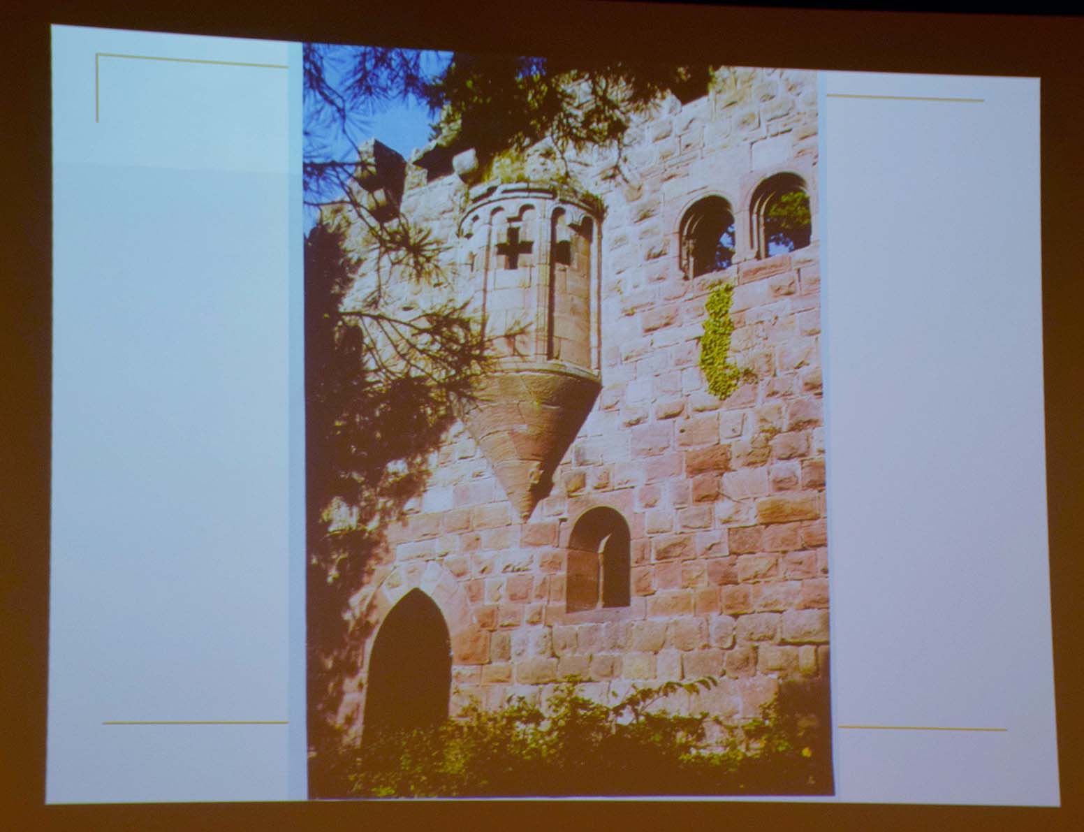 Foto: Herbert VollmerKlein informierte zunächst über die geschichtliche Entwicklung des Burgenbaus. Die Kreuzritter hatten auf ihren Kreuzzügen prächtige Burgen der Muslime kennengelernt. Daraufhin errichteten die heimgekehrten Ritter ihre eigenen Burgen. Das Elsass wurde eine der burgenreichsten Regionen Mitteleuropas. Die erste Burgenbauphase fand von 1155 bis 1190 statt, zu erkennen am romanischen Baustil, die zweite von 1250 bis 1290, in der bereits gotische Elemente verwendet wurden.
