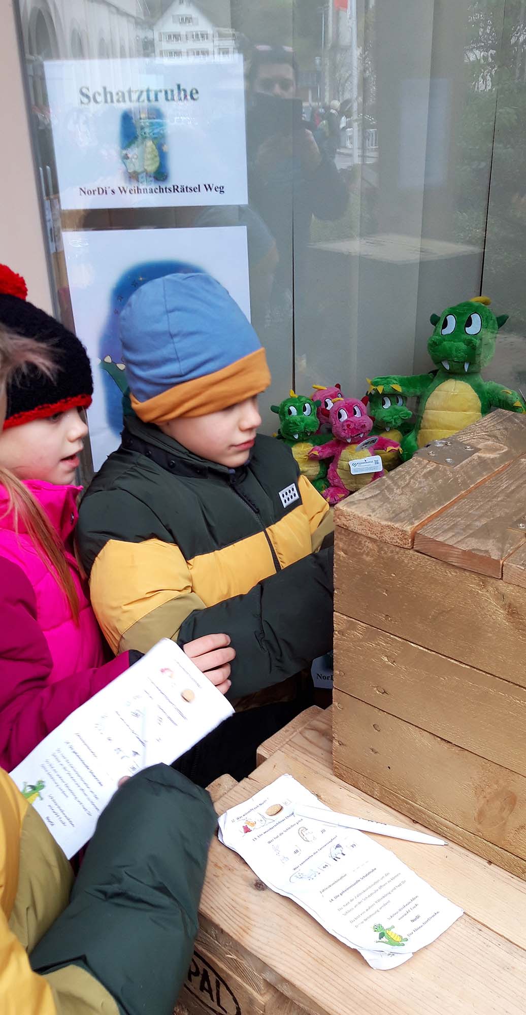 Wer alles richtig hat, dem gelingt es am Ziel sicherlich den Code zum Öffnen von NorDis Schatztruhe zu entschlüsseln. In der kleinen goldenen Kiste wartet für jedes Kind eine kleine Kostbarkeit – etwas, das sich NorDi in diesem Jahr ganz besonders wünscht!