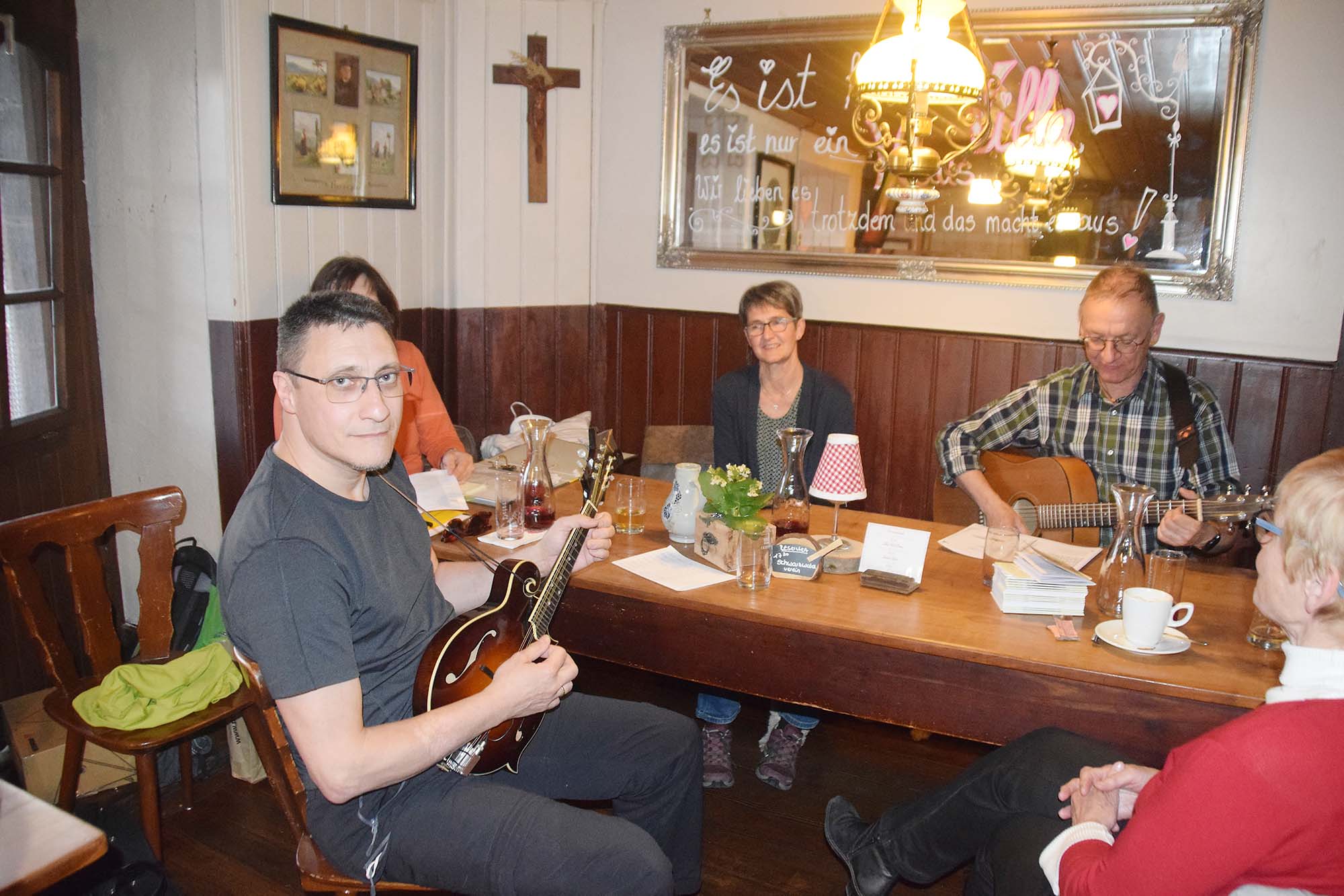 Der Verein möchte auch die Geselligkeit pflegen, betonte Arno Lehmann am Ende der Mitgliederversammlung. Er nahm seine Gitarre, ebenso Werner Busam, und noch lange klangen Lieder in alemannischer Mundart in der beschaulichen Gaststätte auf dem Mühlstein.