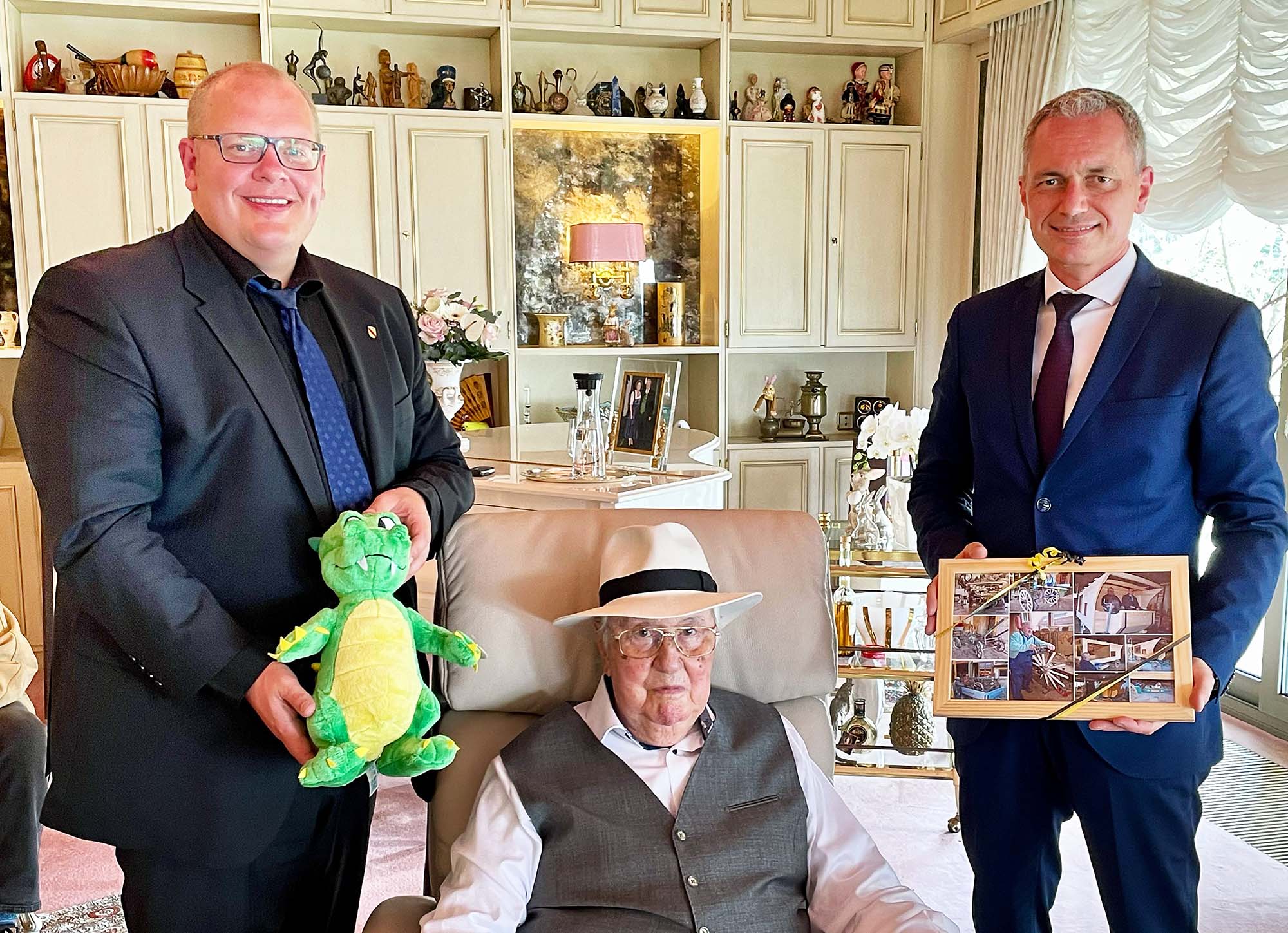 Am Karfreitag, 15. April 2022, konnte der Nordracher Ehrenbürger Erwin Junker seinen 92. Geburtstag feiern. Zu den Gratulanten zählten Bürgermeister Carsten Erhardt und Zells Bürgermeister Günter Pfundstein.