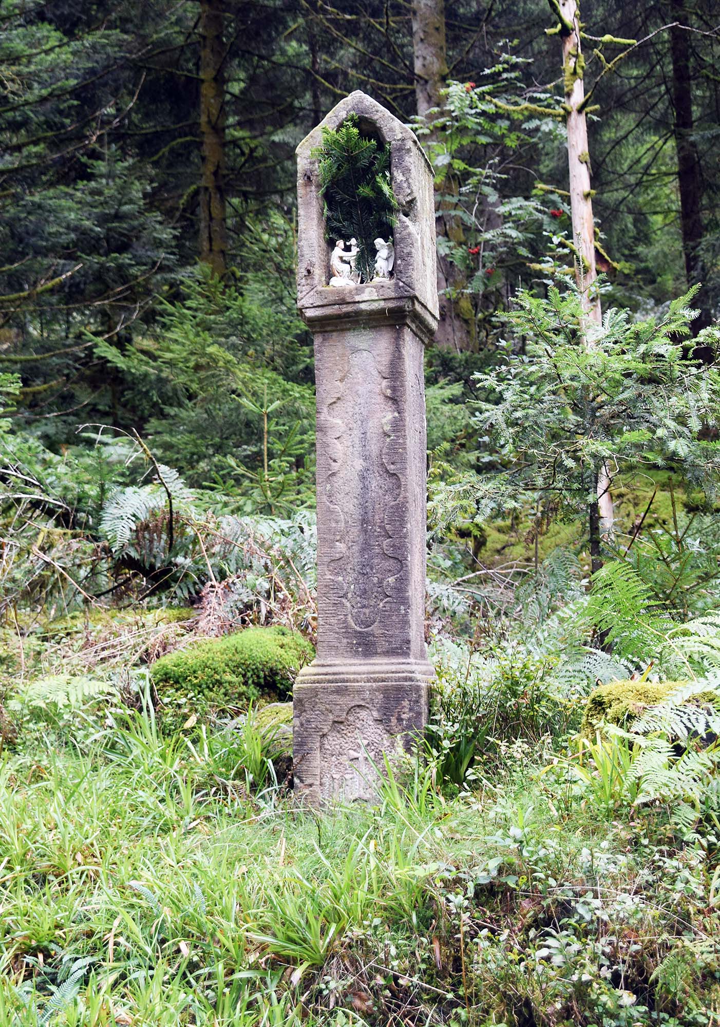 Der Aufstieg führte über den alten Oppenauer Weg den Nagelsbach hoch, an dessen steilem Westhang sich mehrere Höfe befanden. Sie wurden vom Mitteleckhof ausgereutet und urbar gemacht, um einen Zugang zu fließendem Wasser zu erhalten. Auf 700 Meter Höhe erreichten die Wanderer den »Steinernen Wegweiser«, einen Monolithen in der Form eines Obelisken, der im Jahre 1841 errichtet wurde und den Weg von »Nordrach Fabrik« nach Oppenau und Peterstal zeigt.