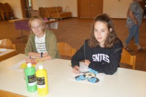 Cornelia Göhringer gab Tipps, wie Gouache aufgetragen werden sollte und hielt die Kinder an, die Comicfiguren nach ihrem persönlichen Geschmack zu gestalten. Die sieben Mädchen und zwei Jungen waren mit Begeisterung bei der Sache. Nach gut zwei Stunden waren die Gemälde fertiggestellt, ein Ehrenplatz in ihren Zimmern dürfte sicher sein.