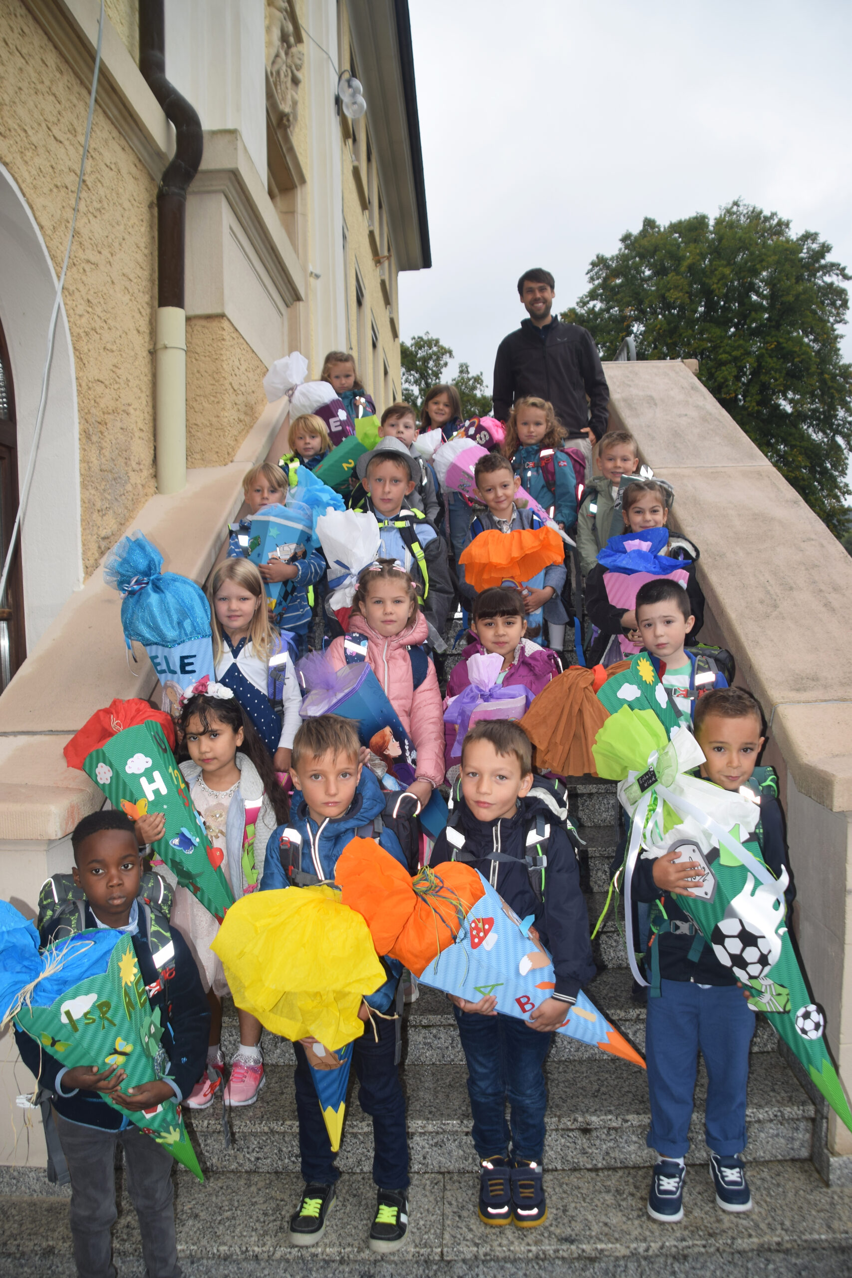 Anschließend zogen die Erstklässler mit ihrem Klassenlehrer Yannick Lupfer zur Grundschule, wo sie in ihrem Klassenzimmer ihre »erste Unterrichtsstunde« erlebten. Der Elternbeirat versorgte währenddessen die Eltern und ihre Angehörigen mit Kaffee, Kuchen und sonstigen Getränken.