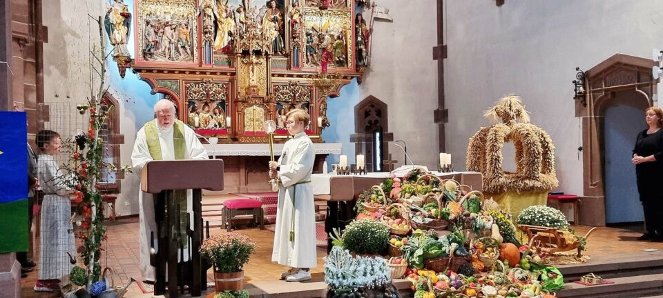 Die Kath. Pfarrgemeinde feierte am Sonntag in Nordrach das traditionelle Erntedankfest unter Beteiligung der Trachtengruppe und des Chors der Klänge mit einem Festgottesdienst.