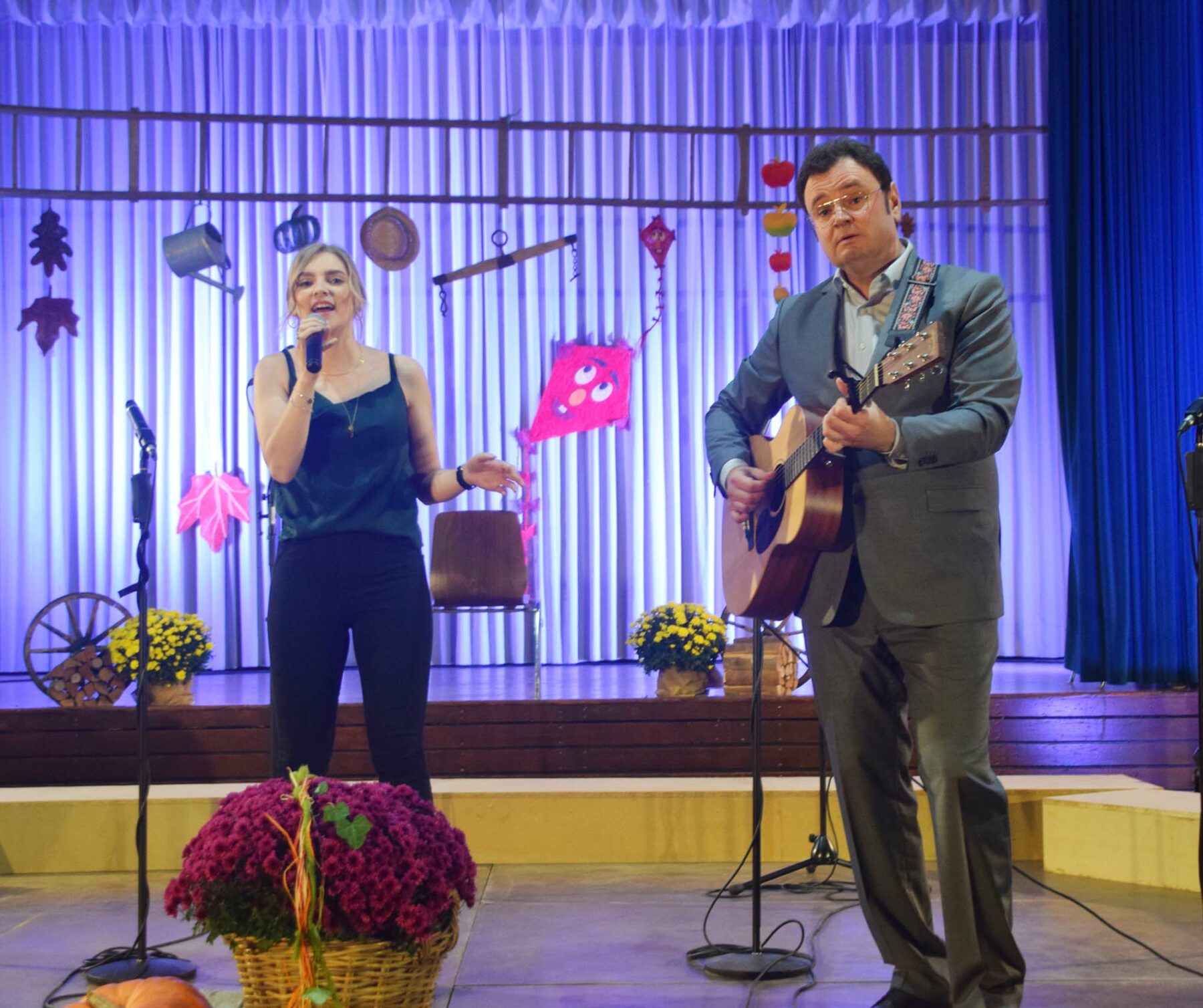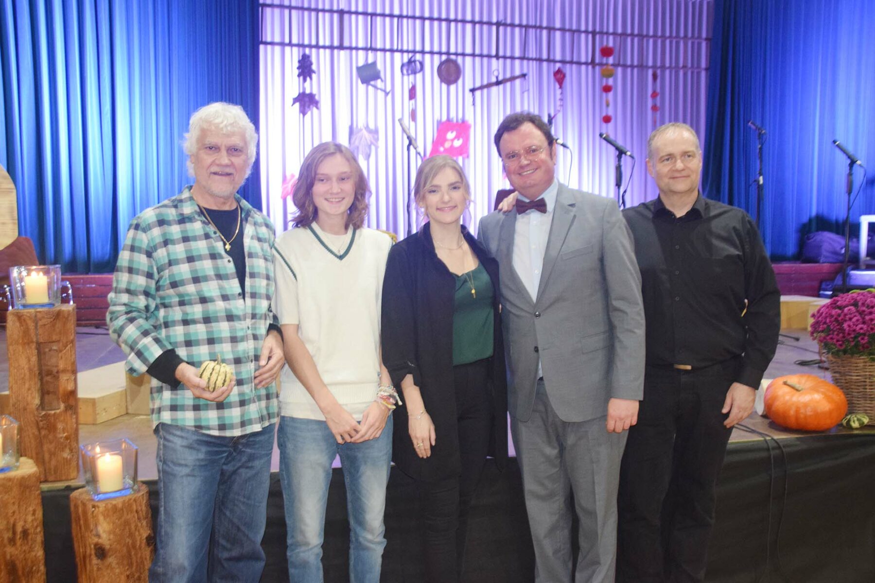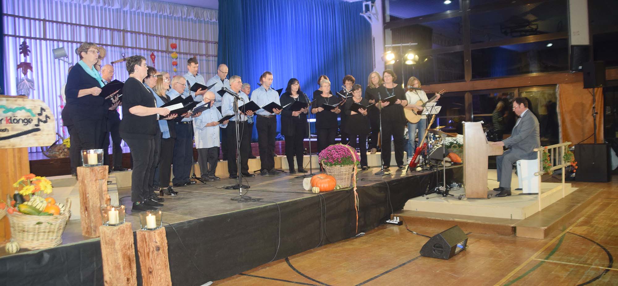 Foyer und Hallenraum der Hansjakob-Halle waren mit Blumen und Accessoires herbstlich geschmückt. Zur Verbesserung der Akustik hatte der Verein vor der Bühne ein niedriges Podest gestellt, auf dem die Chöre sangen.