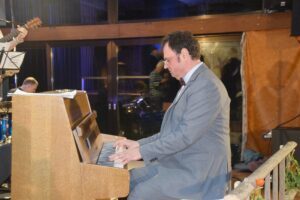 Nun trat der Gastchor »Chor-y-Feen« auf die Bühne. Der Chordirektor FDB Herbert Meßmer stellte ihn kurz vor. Er sei hervorgegangen aus dem früheren Popchor »Arrabiate«, dem im Lauf der Zeit die Männer ausgegangen seien. Vor der Pandemie habe der Chor noch aus 23 Damen bestanden, jetzt seien es noch zwölf, bedauerte Meßmer. »Sie brauchen nicht nachzuzählen«, sagte er, »wegen Corona-Erkrankungen können heute nur sieben Frauen auftreten. Wir wollten den »Chor der Klänge« durch eine kurzfristige Absage nicht im Regen stehen lassen und hoffen auf ihr Verständnis für den schmaleren Chorklang.« Danach erklangen die Lieder »We are the world« von Michael Jackson sowie »Fernando« und »Waterloo« von ABBA. Erstaunlich war, dass es den nur sieben Sängerinnen gelang, so viel Chorklang zu erzeugen. Sie erhielten dafür kräftigen Applaus.