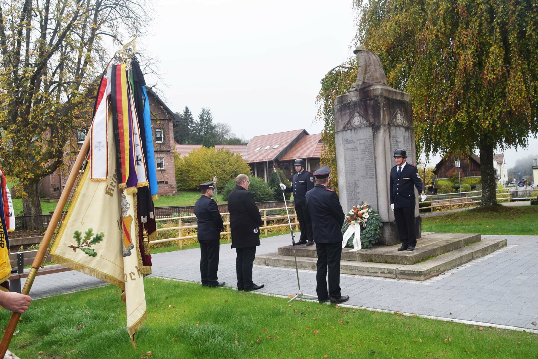 Die Gedenkfeier endete mit der Kranzniederlegung am Ehrenmal. Die Trachtenkapelle spielte dazu »Ich hatt´ einen Kameraden« und zwei Böllerschüsse hallten durch das Tal. Die Kameradschaft ehemaliger Soldaten und die Freiwillige Feuerwehr, die auch die Ehrenwache stellte, nahmen ebenfalls an der Gedenkstunde teil.
