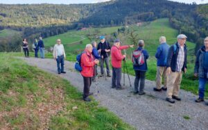 Vom Pfaffenbacher Eck folgten die Wanderer dem Weg Richtung Hirzenberg, Ondräs-Wegle, Kuttelrain, zurück ins Dorf. Bei einem zünftigen Vesper im Mühlenstüble fand der gemütliche Abschluss des Tages statt.