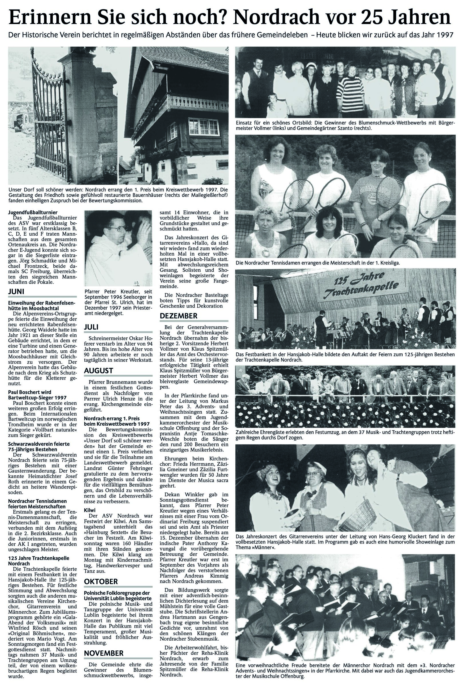 Der Historische Verein berichtet in regelmäßigen Abständen über das frühere Gemeindeleben – Heute blicken wir zurück auf das Jahr 1997