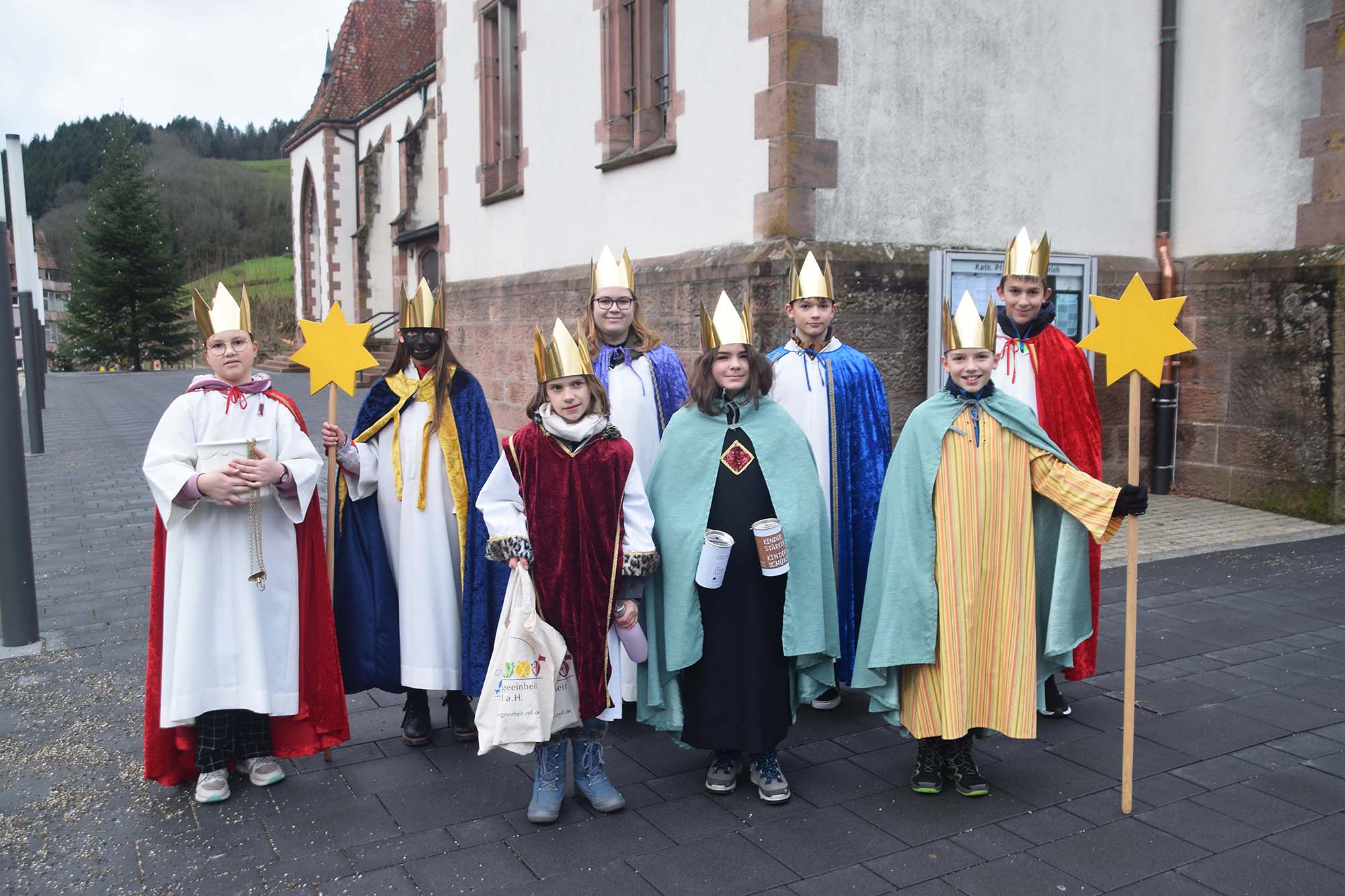 Die Kinder verkleideten sich am Mittwochmorgen als die Heiligen Drei Könige. Eine Gruppe zog zu Fuß durch das Dorf, Luitgard Bieser fuhr die zweite Gruppe mit ihrem Auto ins Hintertal und in die Seitentäler.
