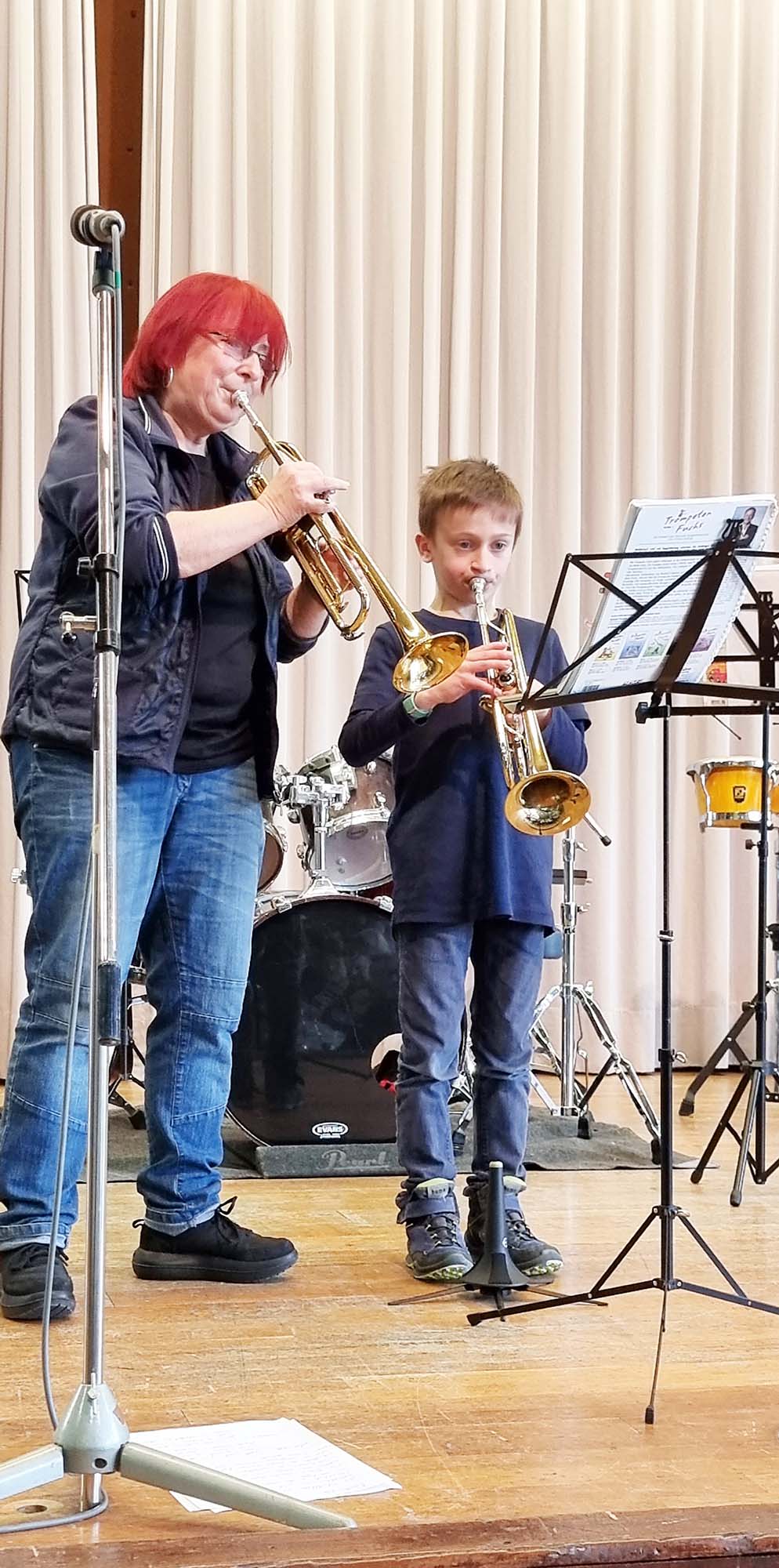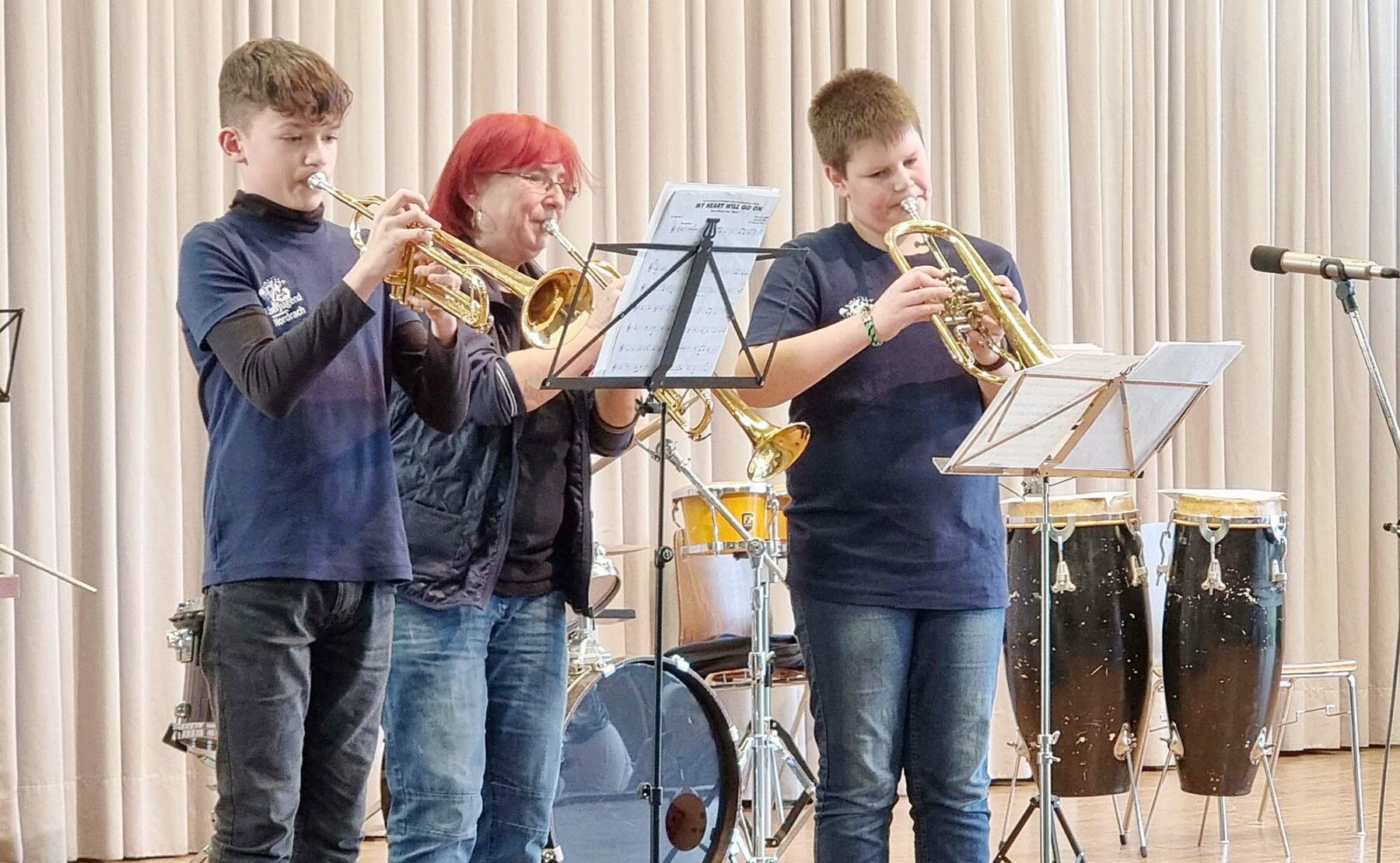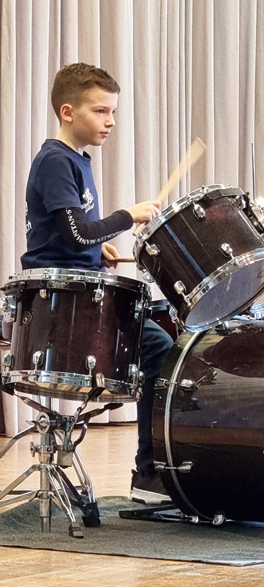 Die Drummer Finn Schwarz und Leo Vollmer schlossen die Einzelvorträge mit Annette Tafler und dem Schlagzeug Trio für »Trommeli, Tom Toms« sowie zwei Solis ab und erhielten vom begeisterten Publikum einen langanhaltenden Applaus.