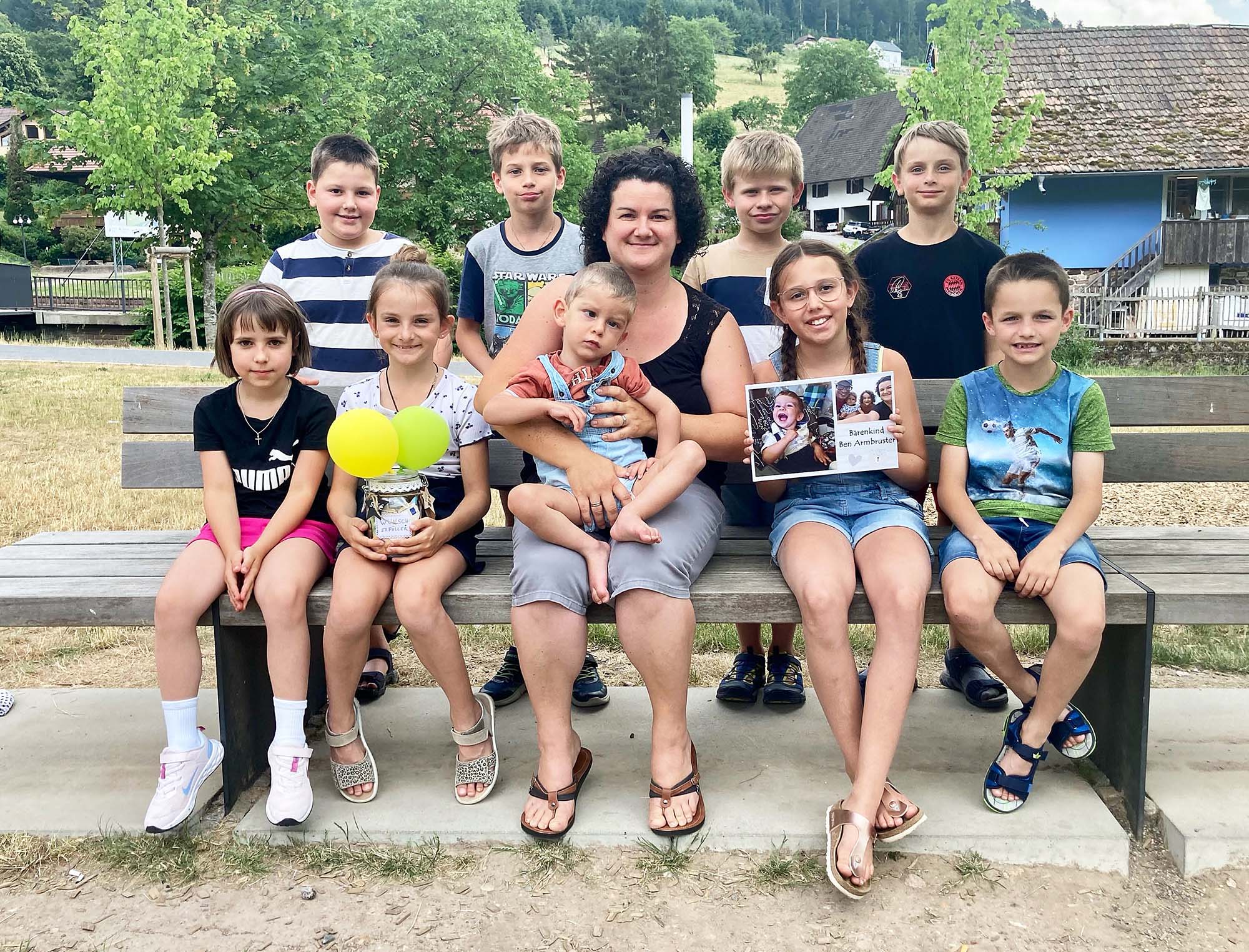 Die Nordracher Kommunionkinder verzichten seit vielen Jahren auf Gegengeschenke und spenden das gesparte Geld an einen sozialen Zweck. Dieses Jahr wählten sie das Bärenkind Ben Armbruster aus Hausach aus. Treffpunkt für die Übergabe war der Nordi-Spielplatz, wo 585 Euro den Besitzer wechselten. So viel ist nämlich zusammen gekommen. Eine Summe, über die sich Bärenkind-Mama Nadine Armbruster sehr freute. Das gesammelte Geld wird Familie Armbruster für die Pferdetherapie nutzen.