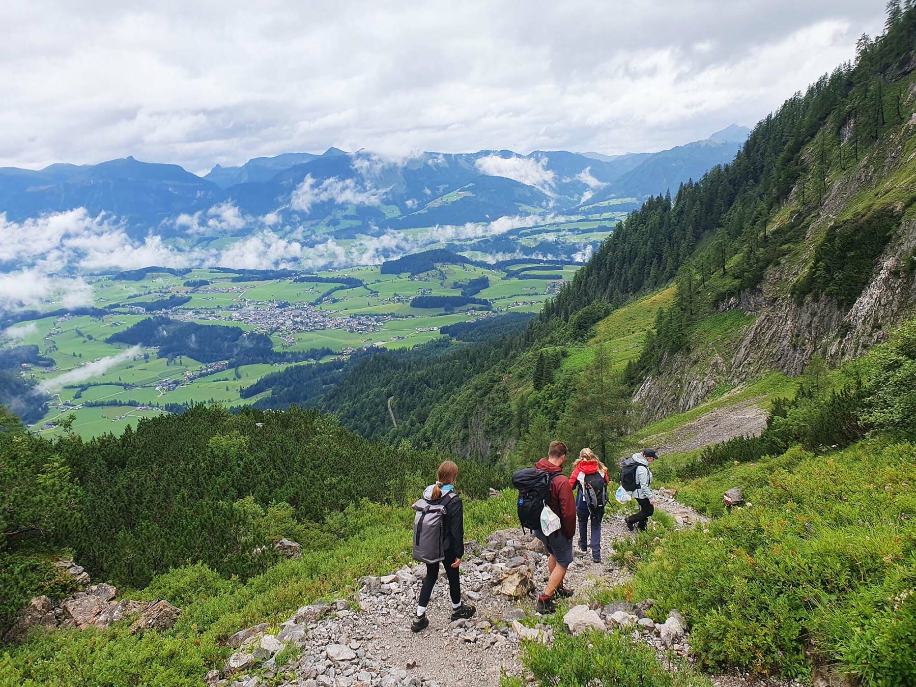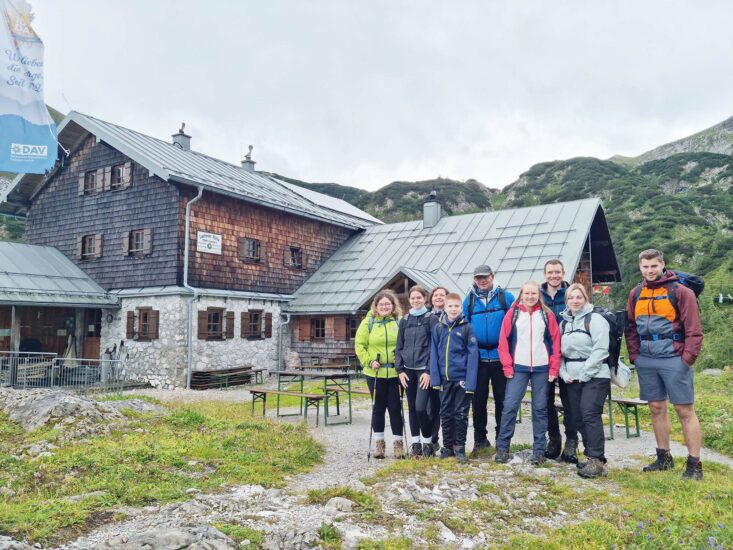 Die Vorstandschaft des DAV Nordrach begab sich mit ihren Familien auf eine Wanderung zur Laufener Hütte im Tennengebirge. Der Aufstieg zum Tagesziel begann in Abtenau inmitten einer sich verdichtenden Wolkendecke. Einige erreichten das Ziel bereits vor dem einsetzenden Regen, bei den anderen bewährte sich die gute Regenkleidung.