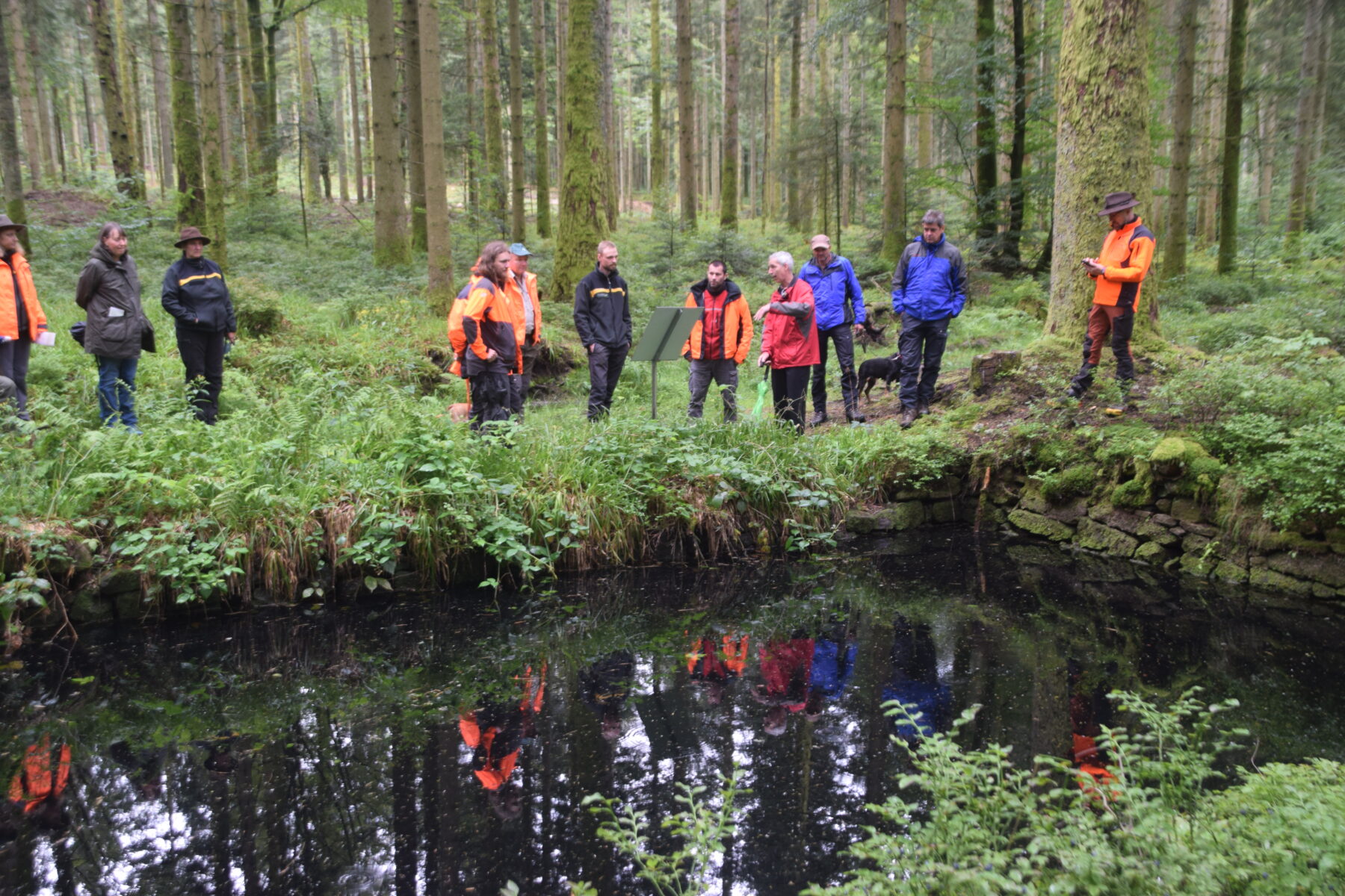 Vierzehn Förster und Mitarbeiter im Innendienst des Forstbezirks Mittleres Rheintal haben sich unter der Führung von Thomas Laifer die Höhenhöfe und die früheren Glashütten angeschaut.