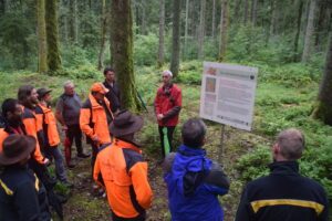 Thomas Laifer führte die Förster diesmal in Nordrach zunächst zum Schäfersfeldhof und seiner Viehtränke und danach weiter in den Glasbach, wo früher eine Glashütte betrieben wurde. Bei dieser Gelegenheit wies Laifer auch darauf hin, dass die Förster auf die historischen Stätten bei der Bewirtschaftung der Waldflächen Rücksicht nehmen sollten. Ebenso müssen die Waldwege, die als Wanderwege ausgewiesen sind, nach dem Transport der Stämme an den Lagerplatz wieder zeitnah instandgesetzt werden.