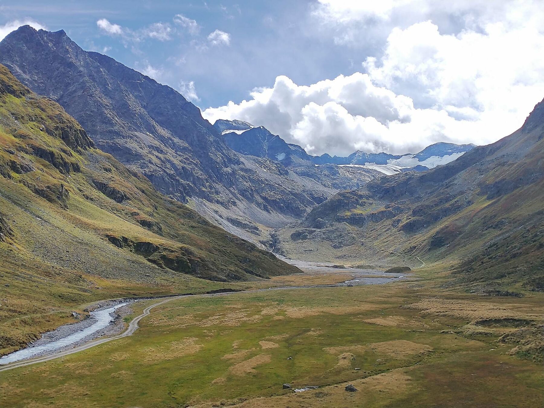 Am Montag führte die Wanderung – nach einem ausgiebigen Frühstück an dem einladenden Frühstücksbuffet – für einen Großteil der Teilnehmer bei zunächst gutem Wanderwetter über die Fahrstraße vorbei an der Larstigalm und über Almwiesen zur Schweinfurter Hütte (2.034 m). Nach einer ausgiebigen Mittagsrast wanderten alle über den Forstweg und den Bergmahderweg zurück nach Niederthai, teilweise begleitet von etwas Nieselregen. Einer kleineren Gruppe war dies nicht genug. Sie wählten den Weg Richtung Fintertaler Sennhütte (2.147 m) über das Grünjoch (2.743 m), den Grünsee und den Bergmahderweg ebenfalls zurück nach Niederthai.