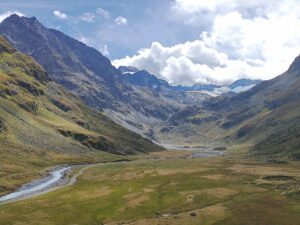 Am Donnerstag entschied sich die Gruppe von Niederthai aus zu wandern, da es der letzte Tag bei tollem Wanderwetter sein sollte. Die „starke“ Gruppe wanderte schon früh über die untere (1.859 m) und obere Hemerachalm (2.085 m) um nach weiteren zwei Stunden den Hemerkogel (2.770 m) zu erreichen. Traumhafte Aussichten ins Ötztal und die umliegende Bergwelt waren an diesem Tag garantiert – strahlend blauer Himmel ließ keine Wünsche offen. Über die Hemerscharte (2.713 m) und den Grastalsee (2.533 m) erfolgte der anstrengende Abstieg, um dann gemütlich durch das Grastal nach Niederthai zurückzukehren.