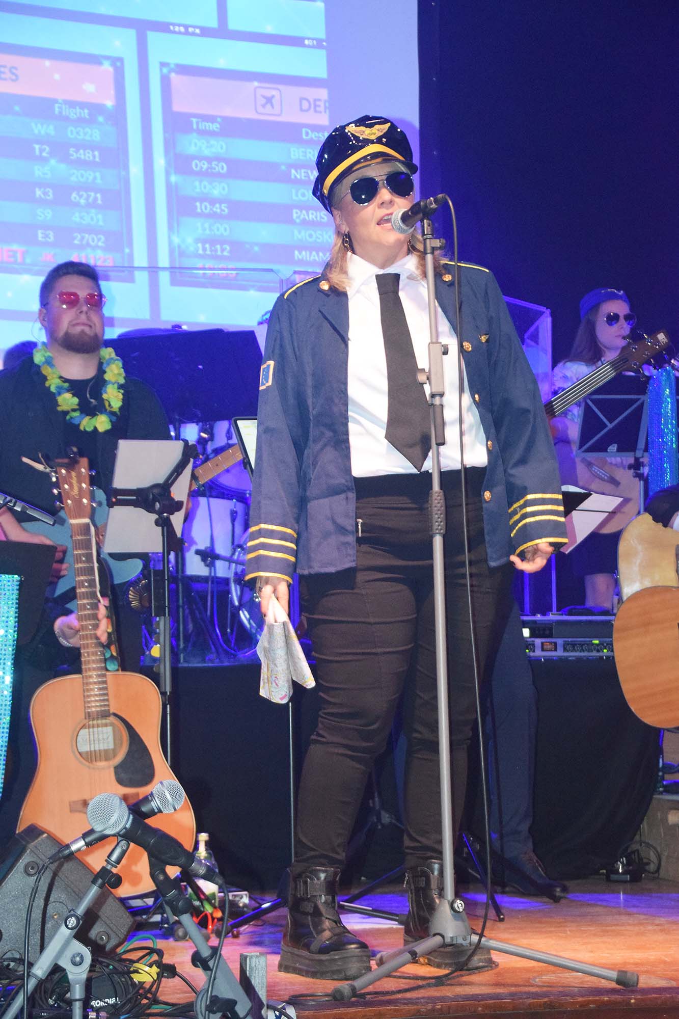 Das neue Programm mit Liedern und Inszenierungen von deutschen und internationalen Schlagern sowie Rock- und Pop-Songs ließ keine Wünsche offen. Liebe, Gefühle, Träume und Emotionen waren die beherrschenden Themen der Songs und Schlager. „Ganz losgelöst, frei, frei, frei, so sollt Ihr Euch fühlen. Wir fliegen ganz ruhig, fliegen durch leichte Turbulenzen, fliegen durch heftige Gewitter, die Euch hoffentlich von den Plätzen reißen werden“, so wünschte sich Dirigentin Stefanie Nock den Konzertabend.