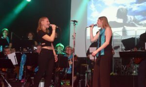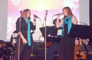 Nach der Pause erklang „Viva la vida“ und dann wagten sich die 15-jährige Mia-Sophie Nock und die 14-jährige Sofia Bieser ans Mikrophon und sangen zusammen „Blurry eyes“, ursprünglich von Michael Patrick Kelly, mit der Botschaft, dass alle geliebt werden, genauso, wie sie sind. Nicht wenige im Publikum bekamen dabei verschwommene Augen und die beiden Solistinnen einen riesigen Applaus.