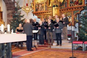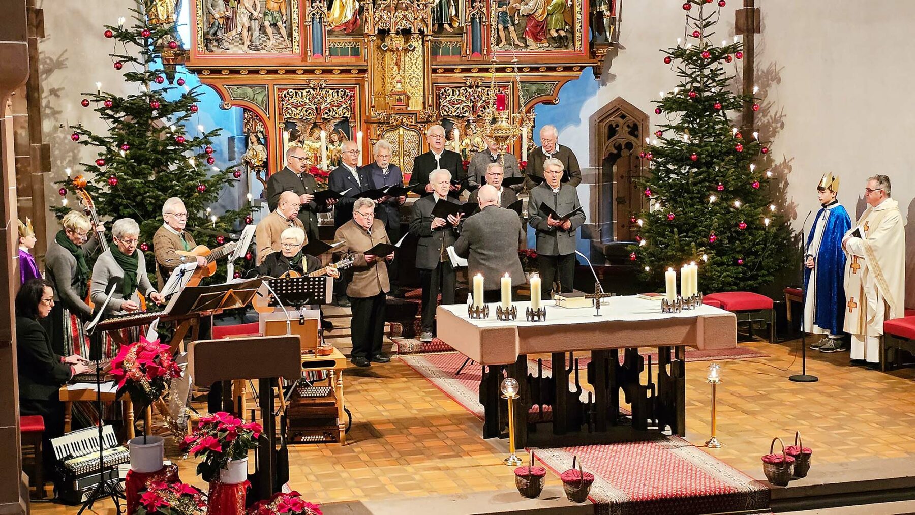 Der Altarraum in der Pfarrkirche Nordrach bot mit den weihnachtlich geschmückten Christbäumen ein prächtiges Bild. Gott loben mit Musik und Gesang, das ist besonders eindrücklich und rührt an, lobte Pfarrer Gerner den Windschläger Wandererchor und die Nordracher Stubenmusik.