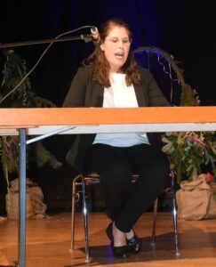 Dann waren Mitglieder der Narrenzunft im Nordracher Fabelwald unterwegs. Der Moospfaff staunte nicht schlecht, als er u. a. Dieter auf einer Survival Challenge und Andrea auf der Suche nach einem Platz für einen Waldkindergarten traf. Auch Egbert erschien als Beerensammler und lobte über alle Maßen gestenreich und überschwänglich die gefundenen „Nodracher Heibere“, die er für eine neue Choco-L-Kreation verwenden wolle. Dann kam auch noch Stefanie, dirigierte schwungvoll mit den Wanderstöcken und ließ das „Nordrach-Lied“ erklingen. Ein köstlicher Spaß, der mit großem Applaus belohnt wurde.