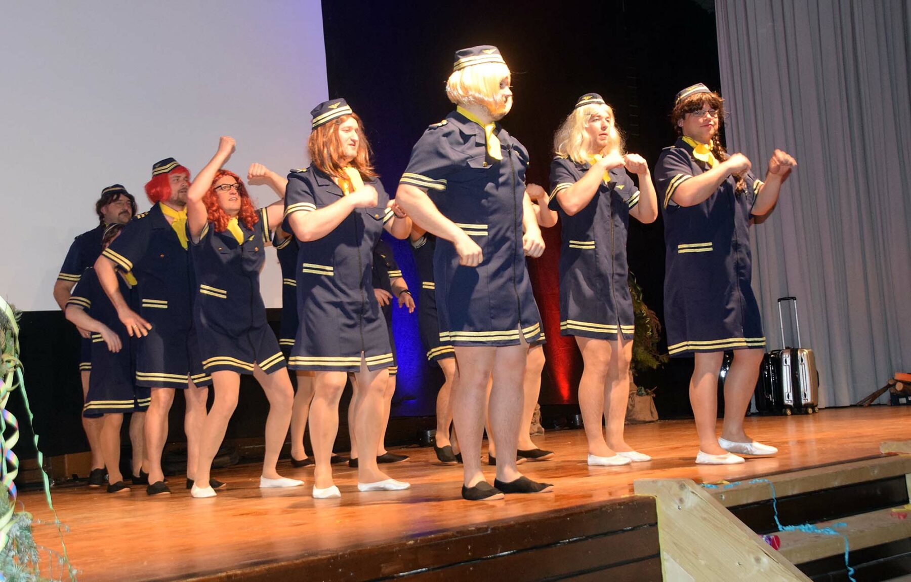 Die LTG-Tanzgruppe als Stewardessen, eine Augenweide!