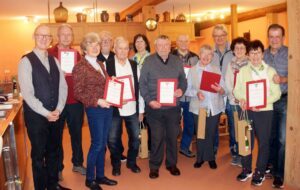 Sie erhielten eine Urkunde mit Ehrenadel sowie ein Weinpräsent.