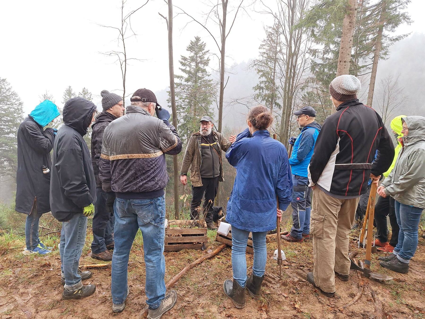 19 Helfer pflanzten 100 Eichen im Nordracher Gemeindewald, alle waren mit viel Spaß bei der Sache.