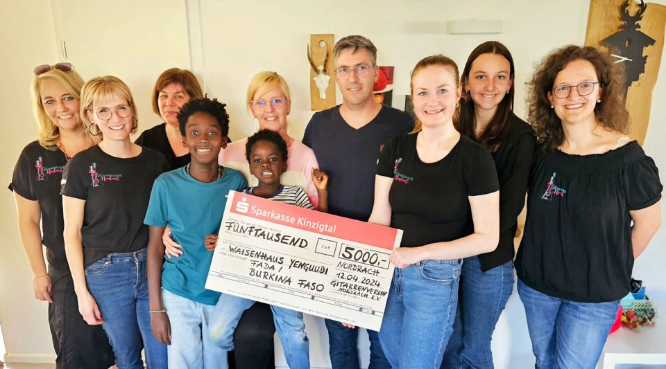 Der Gitarrenverein Nordrach hat in einem bewegenden Treffen 5.000 Euro für das Waisenheim Yenguudi in Burkina Faso gespendet. Das Geld stammt aus einem Benefizkonzert unter dem Motto „Wozu sind Kriege da?“, das im März in der Pfarrkirche Nordrach stattgefunden hatte.