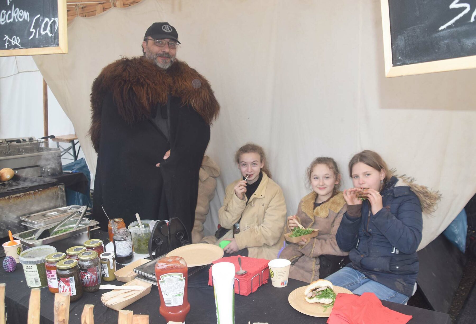 Auf der Wiese hinter der Hansjakob-Halle lagerten im Zeltdorf Frauen und Männer mit ihren Kindern in historischer Kleidung. Das Essen für die Zeltdorfbewohner wurde in großen Kesseln über einem Holzfeuer zubereitet.
