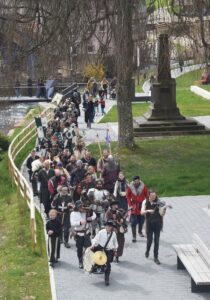 Foto: Herbert VollmerAm Samstag und am Sonntag strömten die Besucher in Scharen herbei, teils selbst „historisch gewandet“, und erfreuten sich an dem gelungenen Spektakel. Am Ostermontag war nach Dauerregen bald Land unter und schon am frühen Nachmittag mussten die Zelte abgebrochen werden.