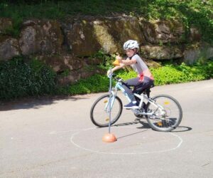 Die Motorradfreunde Nordrach hatten gemeinsam mit dem Grundschulteam wieder einen abwechslungsreichen Parcours auf dem Schulhof anboten: Slalom fahren, eine Wippe oder ein Brett überqueren, scharf abbremsen oder Bälle von einem Eimer in einen anderen transportieren.