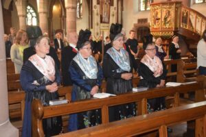 Der „Chor der Klänge“ umrahmte den Gottesdienst musikalisch. Die Erstkommunionkinder sangen das Lied „Lass die Farbe in dein Leben“ und einige von ihnen versahen den Ministrantendienst. Die Kameradschaft ehemaliger Soldaten war mit einer Fahnen-Abordnung gekommen und Mitglieder der Trachtengruppe nahmen in ihrer schönen Sonntagstracht am Gottesdienst teil.