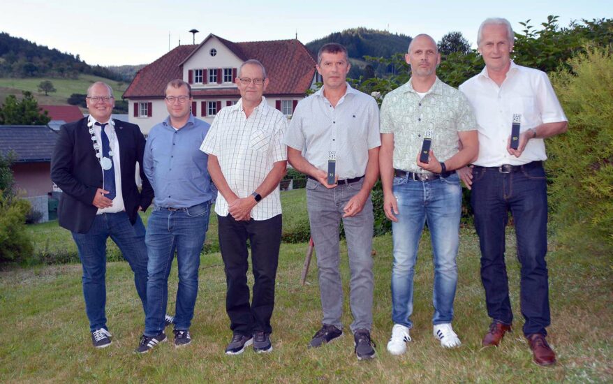 Günter Eble von der Freien Wählervereinigung gehört seit 30 Jahren dem Gemeinderat an. „Er setzt sich mit Herzblut für Nordrach ein“, würdigte Bürgermeister Carsten Erhardt sein außergewöhnliches Engagement. Bei der Wahl am 9. Juni habe er erneut das Vertrauen der Wählerinnen und Wähler erhalten und wurde für fünf weitere Jahre im Amt bestätigt. Als äußeres Zeichen der Anerkennung durfte Günter Eble die Ehrenstele des Gemeindetags Baden–Württemberg mit der Zahl „30“ entgegennehmen.