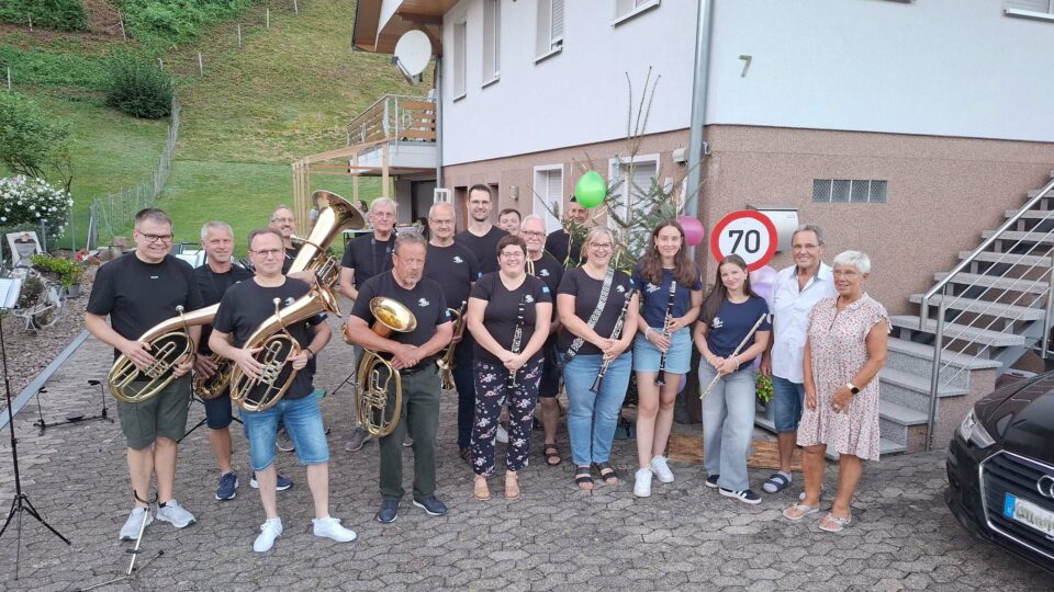 Klaus ist schon seit über 58 Jahren aktives Mitglied und spielt mit großer Leidenschaft die Zugposaune. In der Vorstandschaft hatte er sich auch schon als Kassierer engagiert und so war es für die Musiker der Trachtenkapelle Nordrach eine Ehrensache, ihren langjährigen Kameraden zu überraschen, der im Kreise seiner Familie seinen runden Geburtstag feierte.
