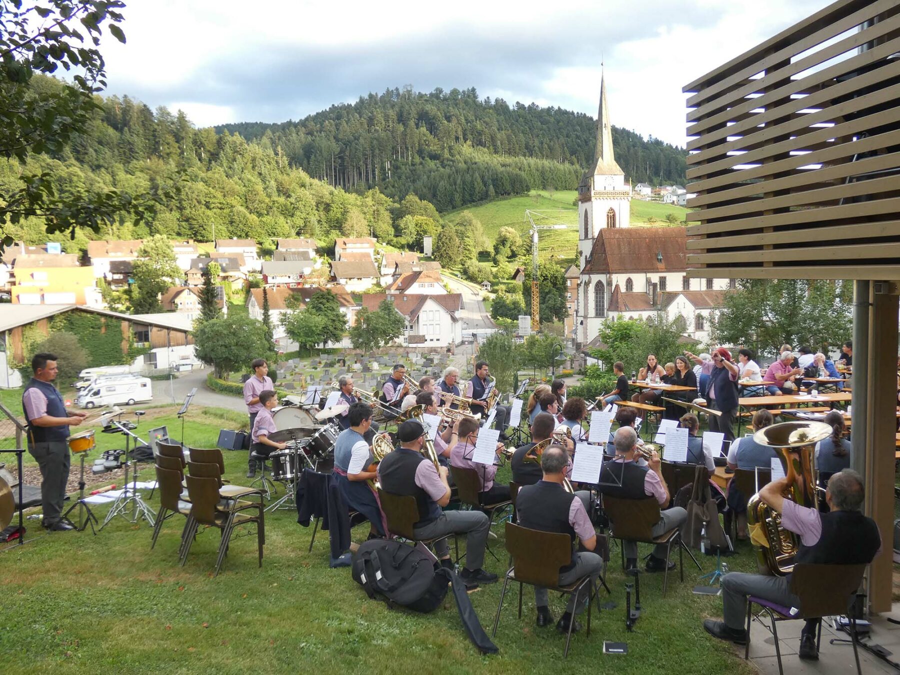 Die Trachtenkapelle Nordrach sorgte für einen tollen Sommerabend auf dem Hermehansenhof, Prima-Laune-Klänge schallten durch das Tal.