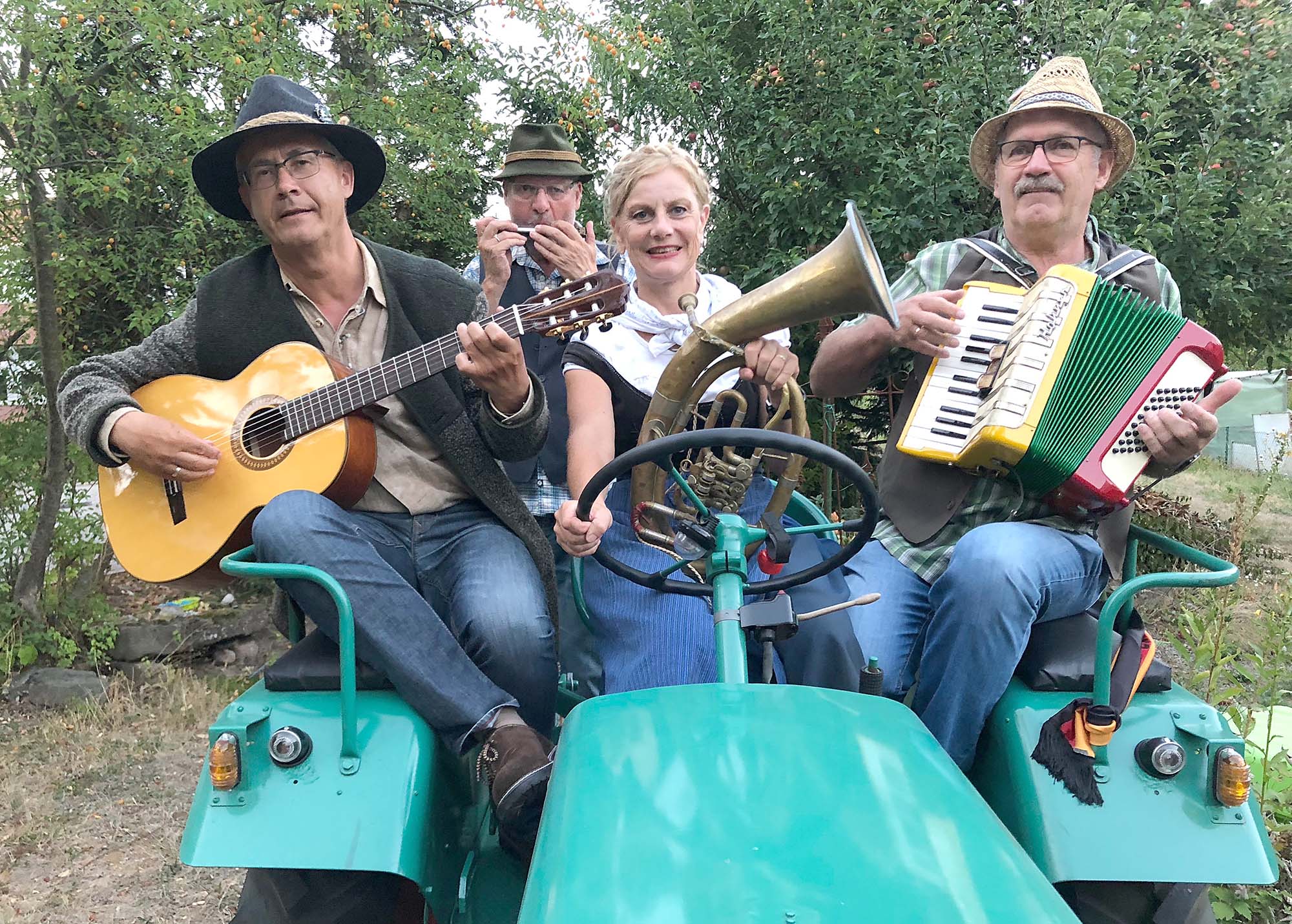 Großer Beliebtheit erfreuen sich die gemeinsamen Auftritte des s’Mariele vum Moosemättle (Billy Sum-Herrmann) und der „Husacher Lumpeliedleband“ (Reinhard Sonntag, Georg Mueller und Alfred Ruf).