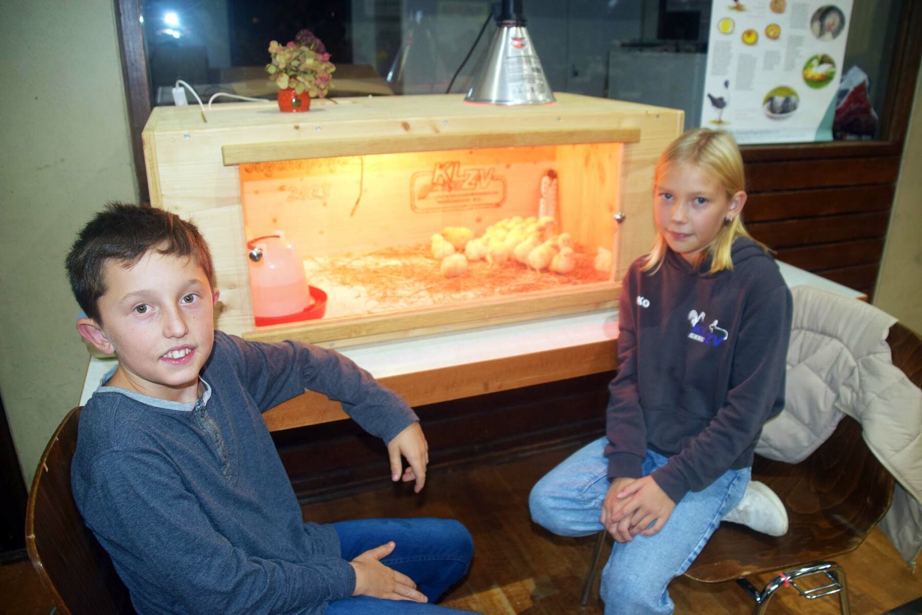 Ein besonderer Blickpunkt für die Kinder war das „Küken-Haus“, in dem erst zwei Tage alte Küken die ersten Schritte ins Leben wagten und schon recht munter die Umgebung ihres Hauses erkundeten. Alwin Schwarz hatte bereits am Freitag im Bildungszentrum Zell den „Küken Schlupf“ präsentiert, ein Projekt, das jährlich an einer anderen Schule durchgeführt wird und großes Interesse bei den Kindern findet.