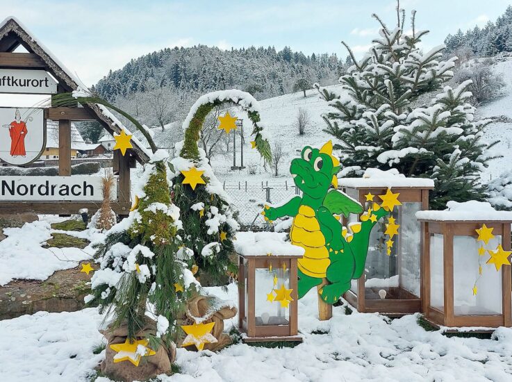 „Begleitet die beiden Drachen auf ihrer spannenden Reise und findet gemeinsam heraus, wie Weihnachten in anderen Ländern gefeiert wird“, ruft die Tourist Information Nordrach alle NorDi-Fans auf. Wer alle Fragen richtig beantwortet hat, kann sicherlich das Schloss an der Schatztruhe öffnen. Darin findet sich für jeden Besucher eine kleine Belohnung.