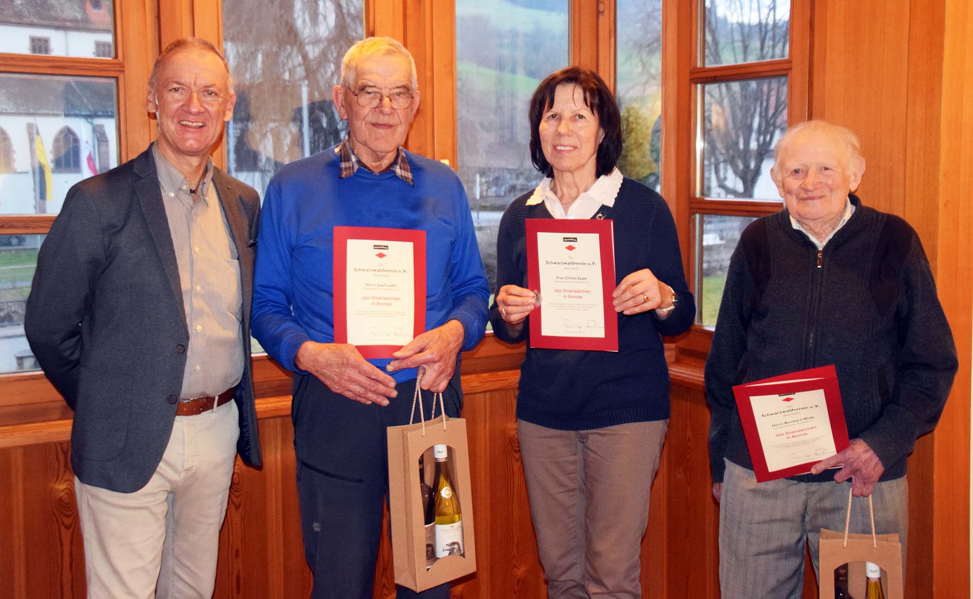 Sie erhielten eine Urkunde mit Ehrenadel sowie ein Weinpräsent.
