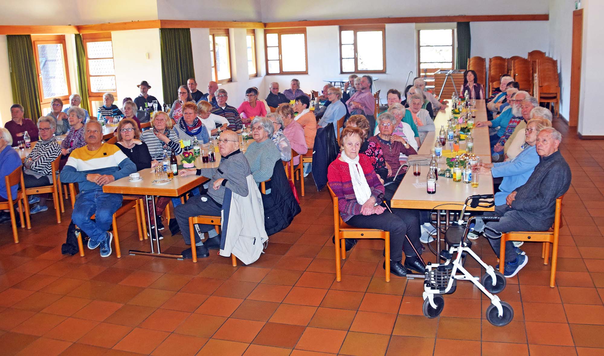 Schon lange ist es her, dass ein Seniorennachmittag so gut besucht war. Rund 60 Seniorinnen und Senioren, auch aus umliegenden Gemeinden, kamen am Mittwochnachmittag ins Bürgerhaus und ließen sich von Dr. Ingo Frithjof Zürn darüber informieren, wie Arthrose entsteht und was man dagegen tun kann. Die Frauengemeinschaft sorgte wie gewohnt für das leibliche Wohl der Gäste. Zunächst gab es die obligatorische Kaffeerunde mit leckeren, selbst gebackenen Kuchen und Torten der Frauengemeinschaft.