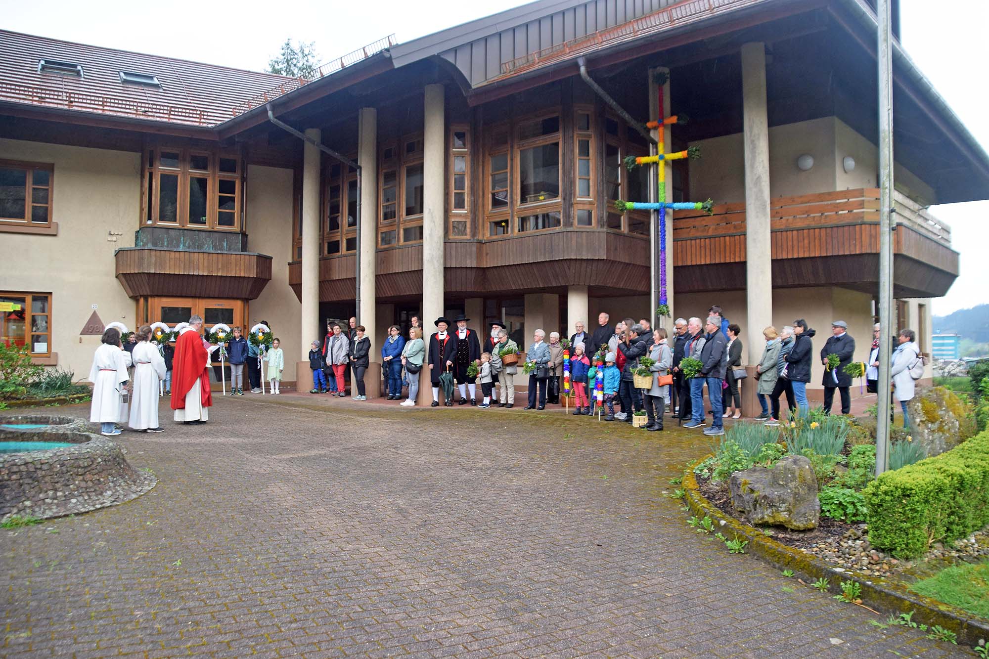 Auch in Nordrach wurde diese alte Tradition wieder gefeiert. Die Gläubigen versammelten sich vor dem Gottesdienst am Bürgerhaus. Pfarrer Bonaventura Gerner erläuterte die Bedeutung des Palmsonntags. Die Bibel berichtet, dass Jesus auf einem Esel reitend nach Jerusalem kam, um dort das jüdische Passahfest zu feiern. Die Menschen jubelten ihm zu und hielten grüne Zweige in den Händen. Daran erinnern die Feiern bis heute.