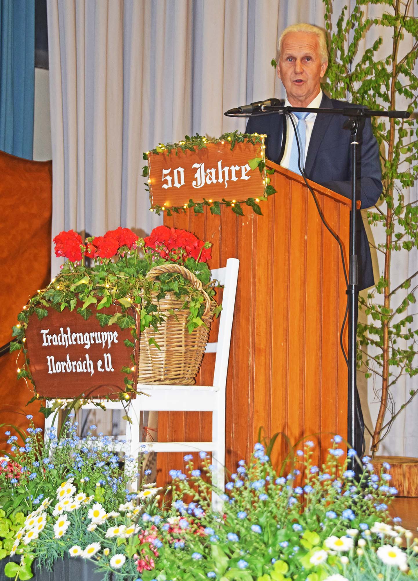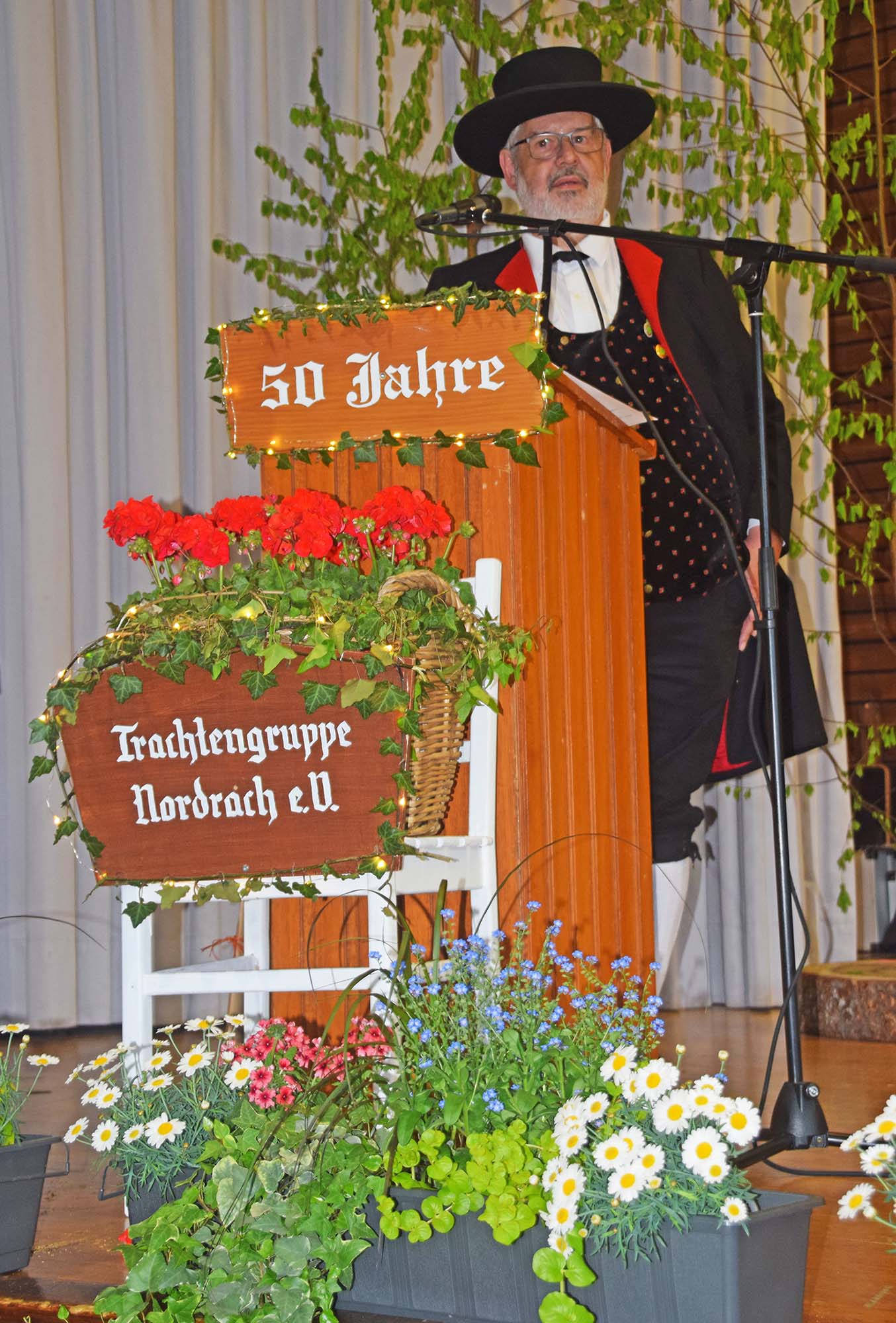 Am Samstagabend feierte die Trachtengruppe Nordrach in der Hansjakob-Halle ihr 50-jähriges Bestehen mit einem festlichen Jubiläumsabend. Zu den Ehrengästen zählten Staatssekretär Volker Schebesta, der Präsident des Bunds Heimat und Volksleben (BHV), Siegfried Eckert, sowie Bürgermeister-Stellvertreter Günter Eble.