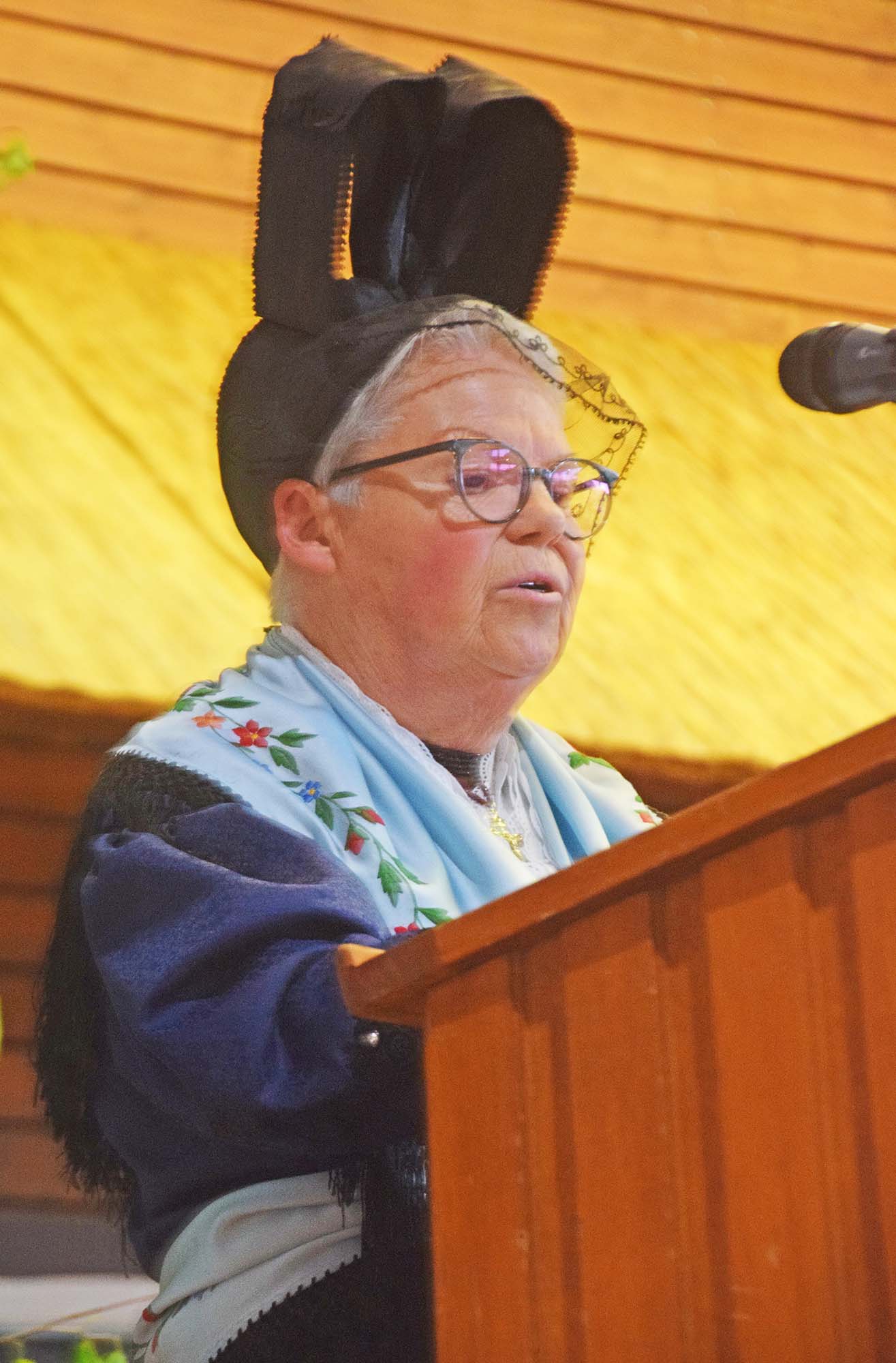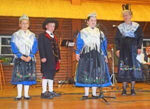 Drei Trachtenkinder erklärten anschließend in gereimten Worten ihre Tracht und wurden für ihren couragierten Auftritt mit kräftigem Applaus belohnt.
