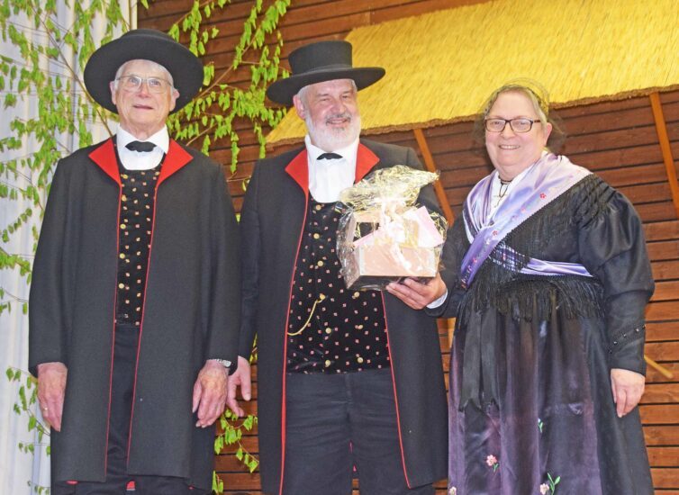 Vereinssprecher Herbert Vollmer hob hervor, dass die Trachtengruppe das kulturelle Leben Nordrachs präge, etwa beim Palm- und Kräuterbüschelbinden. Unvergessen seien die Hochzeitszüge zur 850-Jahr-Feier und bei weiteren Festen. „Wir sind stolz, dass es die Trachtengruppe in Nordrach gibt und sie seit 50 Jahren zu unserer Vereinsgemeinschaft gehört“, sagte Vollmer. Im Namen der örtlichen Vereine überreichte er symbolisch einen Scheck über 1.250 Euro.