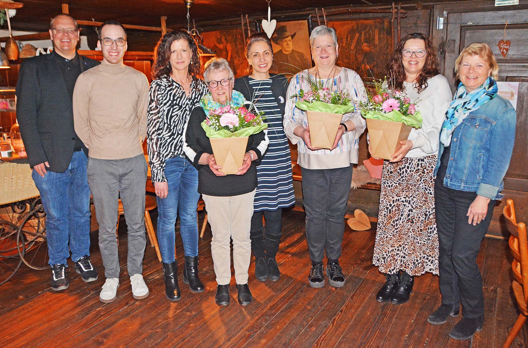 Seit 10 Jahren gehören Ärztin Elena Badea, Sporttherapeutin Irena Kulesza und Hauswirtschaftsleitung Silvia Kälble zum Team. Service-Mitarbeiterin Johanna Hübel konnte für 30-jährige Zugehörigkeit geehrt werden. Hauswirtschafterin Gertrud Huber wurde für 30 Jahre geehrt und gleichzeitig in den Ruhestand verabschiedet.